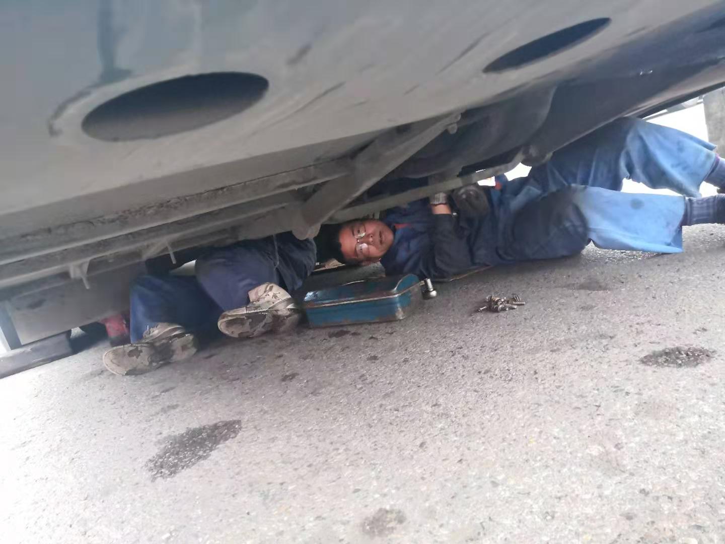 11月21日上午客服總調(diào)親自帶隊(duì),修理廠派出維修精英4人,于11:30抵達(dá)。此時(shí)天空不作美,寒風(fēng)刺骨摻和冰冷雨水,搶修環(huán)境更為惡劣,為盡快恢復(fù)班次,師傅們顧不上吃飯,便開(kāi)始搶修工作,從變速箱附件拆卸、安裝,變速箱落地、吊裝,分離軸承更換、潤(rùn)滑,每個(gè)步驟環(huán)節(jié)都井然有序,連續(xù)作業(yè)3小時(shí)后,于下午14:30搶修成功。此時(shí),師傅們才放心的吃了飯,穿著濕透的工作服返回?fù)P州。他們?cè)谄椒驳墓ぷ鲘徫簧,用辛勤的汗水,展現(xiàn)了揚(yáng)汽人默默奉獻(xiàn)的精神。